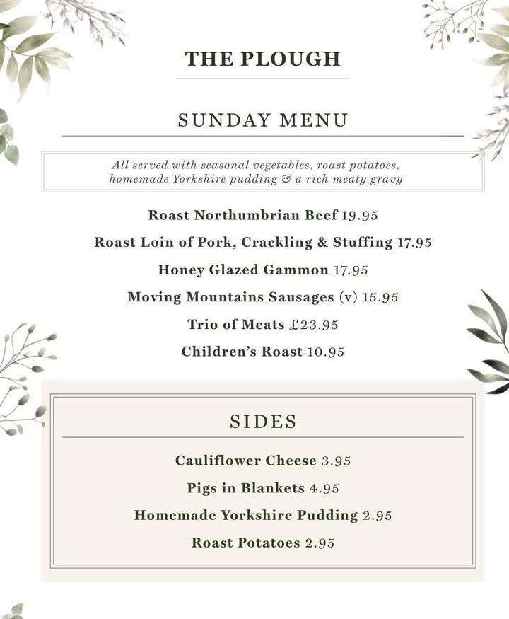 Book Now For Sunday Lunch 😀👍🏻 Here’s our Sunday Menu and we are taking table bookings now for this Sunday… https://www.ploughalnwick.co.uk/food/ 01665 602395 Book online here or give us a call and we’ll reserve you a lovely table…😉 Vicky and the Team The Plough, Alnwick.